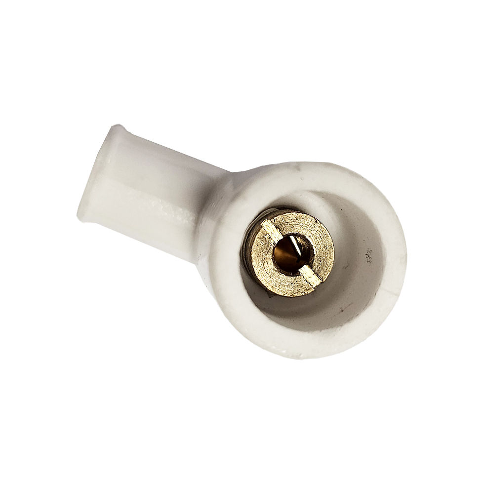 Premium quality straight ceramic plug cap, designed for optimal performance and durability. This high-grade ceramic cap is compatible with most standard ignition cables, ensuring a secure and efficient connection. It is suitable for use with electrodes or spark plugs featuring a 4mm or M4 threaded terminal.